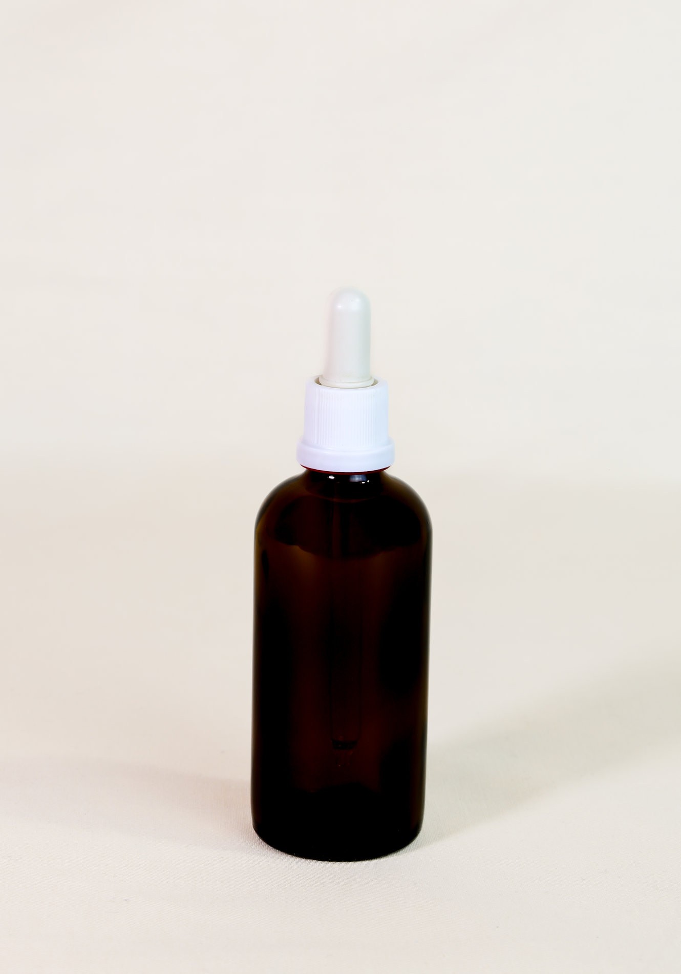 Bouteille pipette ambrée 100 ml vide.